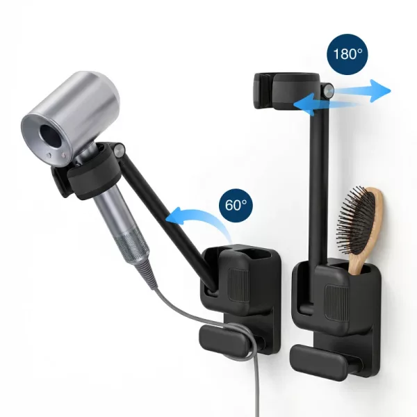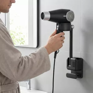 Uso questo supporto per asciugacapelli ogni mattina e il mio bagno non è mai stato così ordinato! Facilissimo da installare, presa forte e adatto a diversi asciugacapelli.