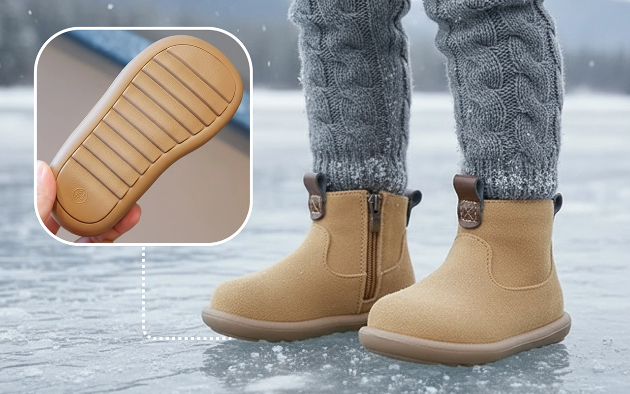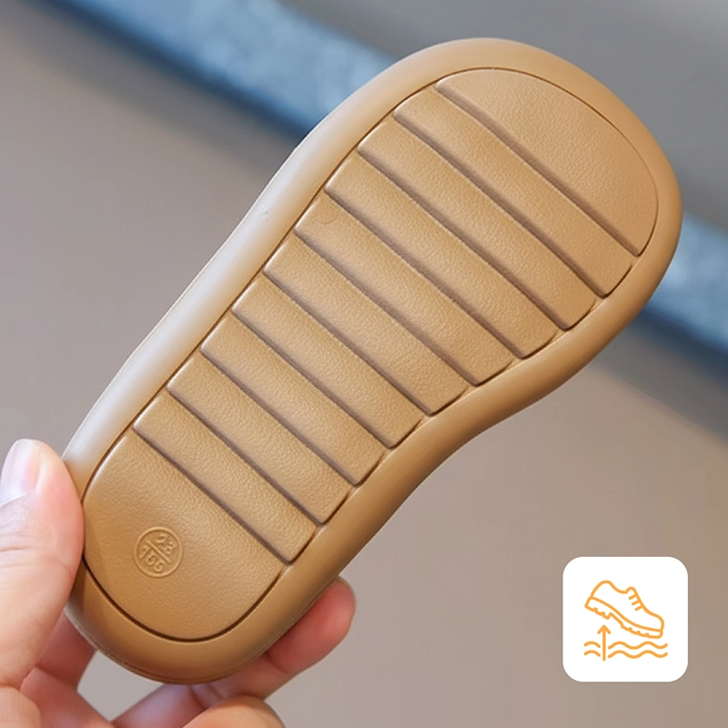 Suole antiscivolo evitano cadute accidentali su pavimenti lisci o bagnati. I bambini restano stabili su parchi giochi, marciapiedi o piastrelle di classe.