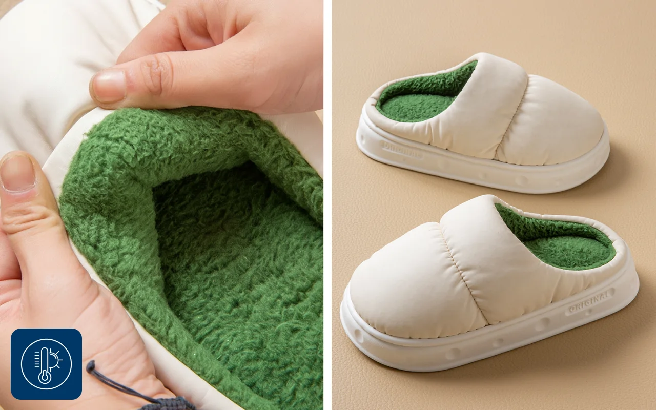 Il rivestimento in morbida peluche isola le dita dal freddo dei pavimenti interni. Ogni notte godi di piedi caldi anche durante il freddo invernale.