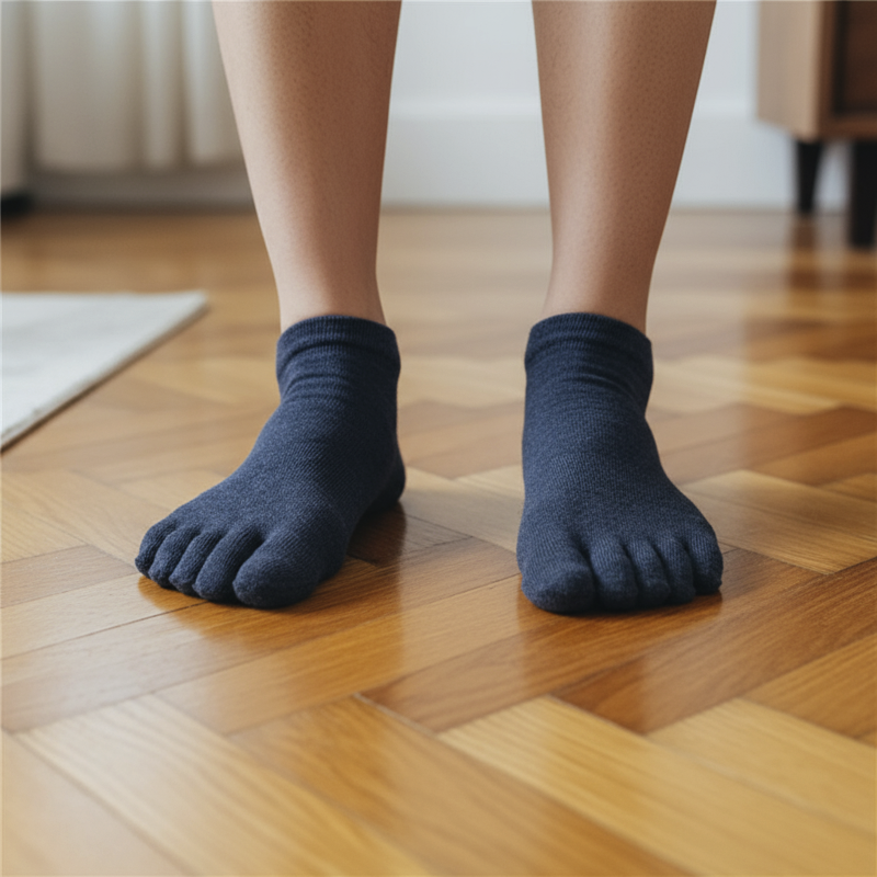 Mai più piedi freddi sui pavimenti gelidi ogni mattina. Ogni dito trova comfort e spazio, prevenendo la sensazione di costrizione tutto il giorno. I calzini Ortorex migliorano la stabilità durante lo yoga, l’allenamento o semplicemente mentre ti rilassi in casa.
