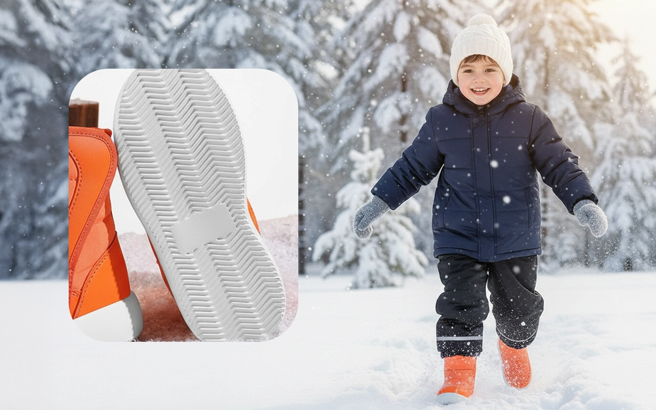 Le suole testurizzate offrono una presa salda su sentieri ghiacciati o suolo bagnato. Preoccupati meno delle scivolate durante passeggiate sulla neve o viaggi a scuola.