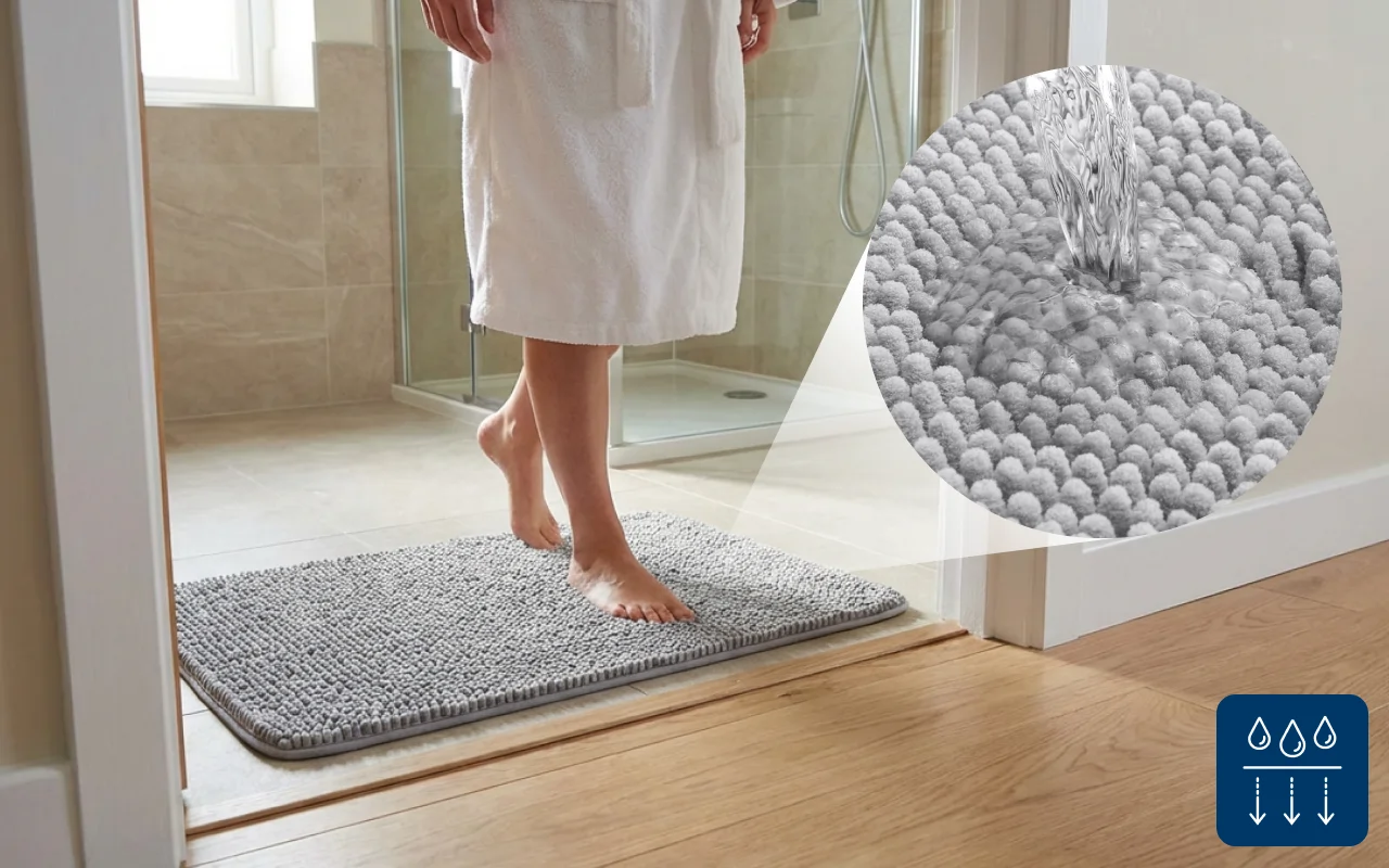 L'umidità viene assorbita rapidamente, mantenendo le superfici asciutte e sicure. Dì addio alle impronte bagnate e goditi stanze sempre ordinate.