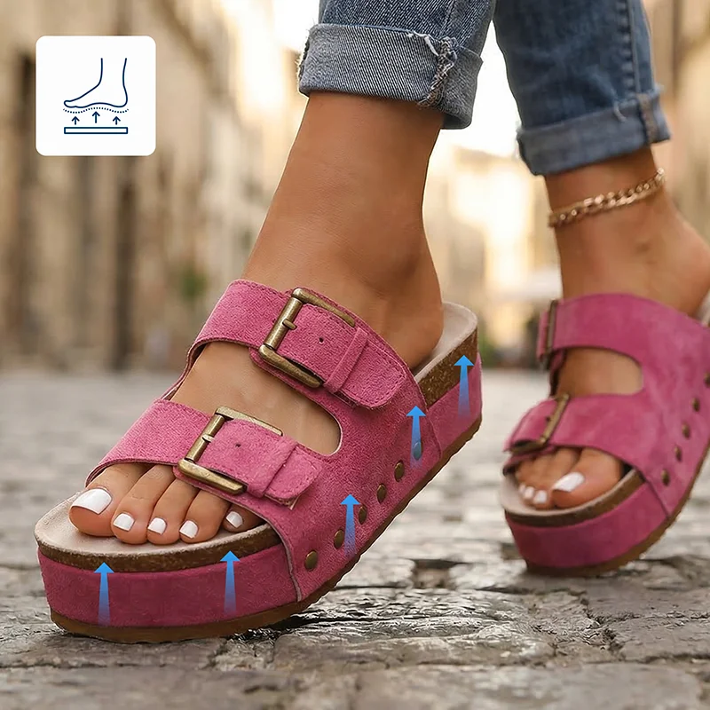 La spessa zeppa assorbe la pressione e riduce rapidamente la stanchezza. Rimani attiva più a lungo senza archi doloranti o talloni indolenziti.