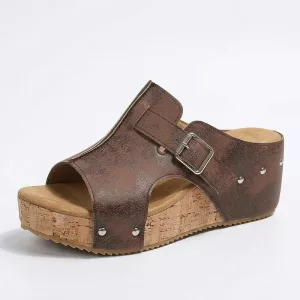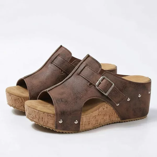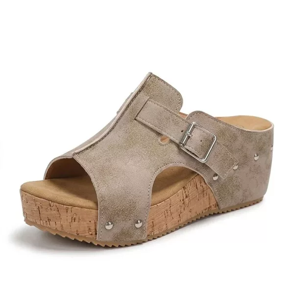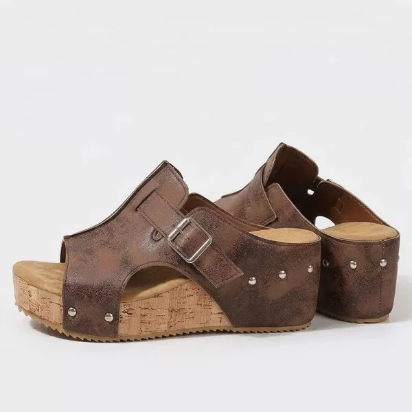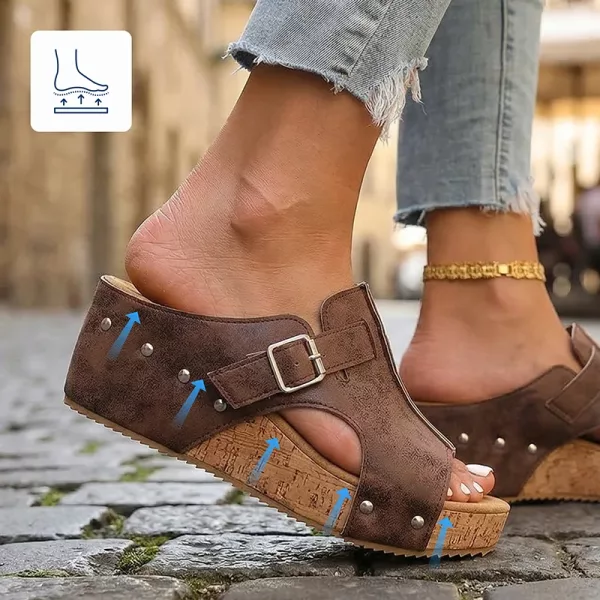 Una morbida imbottitura assorbe la pressione e crea un delicato sollievo. Ogni passo risulta fluido mentre indossi questi sandali con zeppa.