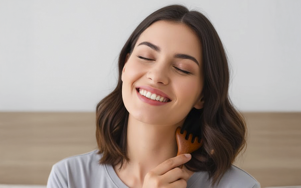 Denti arrotondati e delicati massaggiano la pelle e alleviano la tensione. Sentiti rinvigorito mentre lo stress si scioglie a ogni passata.