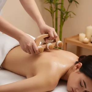 La struttura in legno ecologico significa che nessuna plastica aggressiva tocca la pelle. Le delicate punte in silicone rendono ogni sessione rilassante e sicura.