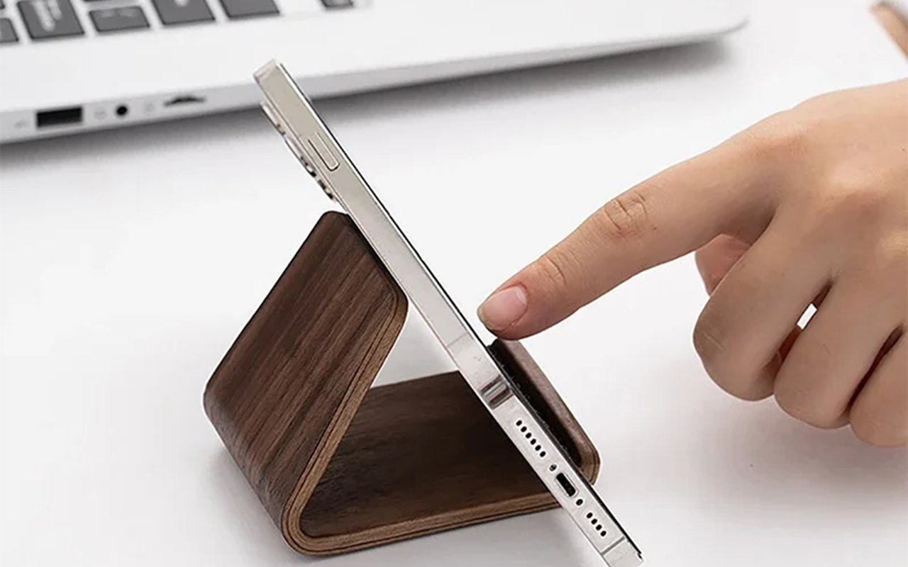 Adoro questo supporto! Mantiene il telefono in verticale mentre lavoro, così controllare i messaggi è facilissimo. La finitura in legno si abbina perfettamente all’arredamento della mia stanza.