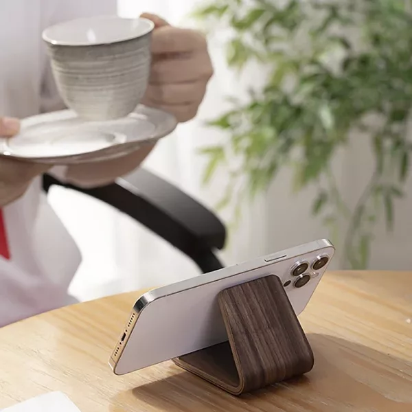 Adoro questo supporto! Mantiene il telefono in verticale mentre lavoro, così controllare i messaggi è facilissimo. La finitura in legno si abbina perfettamente all’arredamento della mia stanza.